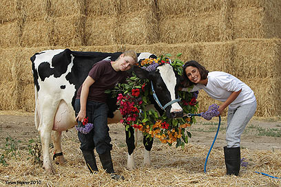 La bête, nommé Souffa, a eu droit à une petite cérémonie et à une couronne de fleurs. Le kibboutz a également été félicité pour le rendement annuel moyen de son étable, avec 13976 de lait par vache