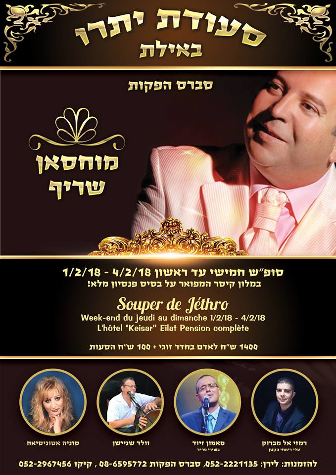 Le public israélien attend les performances de M. Mohsen Cherif. L’événement se déroulera à l’Hotel Caesar Premier Eilat.