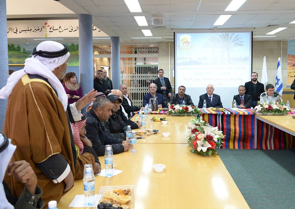 Le Président Réouven Rivlin a effectué ce mercredi, 18 février 2015,n une visite dans les communes du sud de Rahat et de Houra, où il a été reçu par les dirigeants des communautés bédouines.