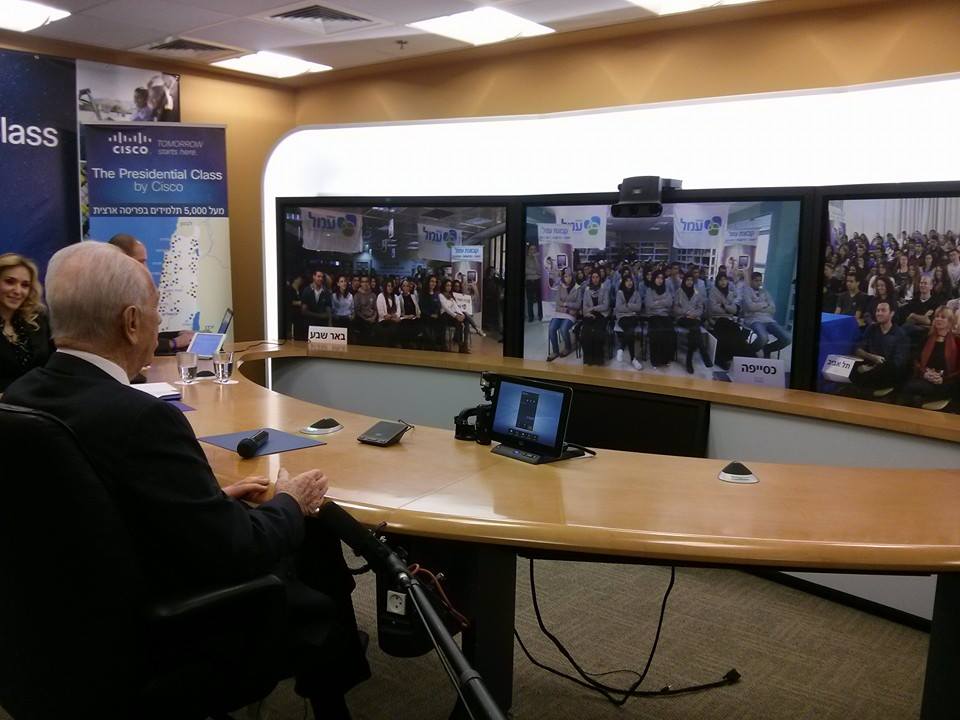 C’est le plus grand cours virtuel d’instruction civique dispensé par Shimon Peres depuis le siège de Cisco en Israël.