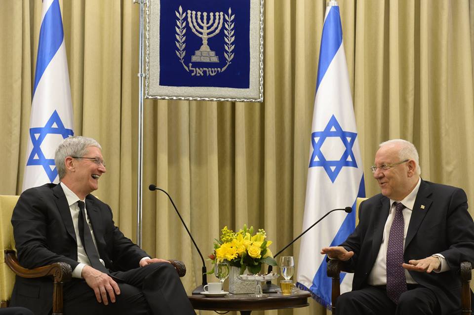 Tim Cook et Reuven Rivlin, Crédit GPO/Amos Ben-Gershom