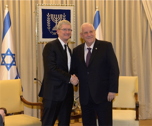 Le déplacement de Tim Cook en Israël, ce mercredi 25 février 2015, a été l’occasion d’une rencontre avec le président israélien Réouven Rivlin, à sa résidence de Jérusalem.