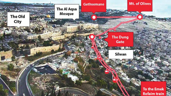 Longue de 1,4 km, cette ligne partira de la partie ouest de Jérusalem pour rejoindre le Mont des Oliviers, à Jérusalem-est, puis la porte des Immondices, à l’entrée de la Vieille ville, porte la plus proche du mur des Lamentations. « La plus grande partie de son itinéraire passera par des terres domaniales », a ajouté le ministre sans donner d’autres détails.
